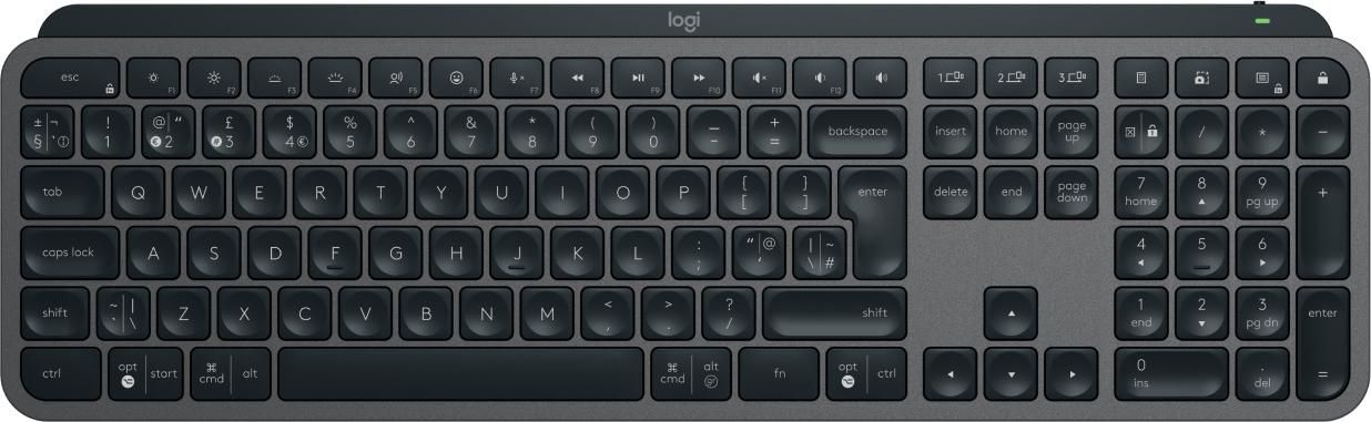 Logitech MX Keys S, Logi Bolt/Bluetooth, automatisk bakgrundsbelysning, PC/Mac/Android/iOS, engelskt UK - Grafit