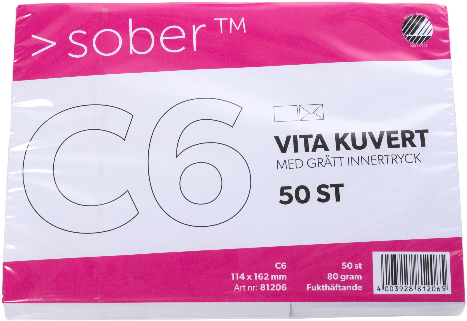 Kuvert Mayer Sober S65 Vit, fukthäftande förslutning, 50-pack
