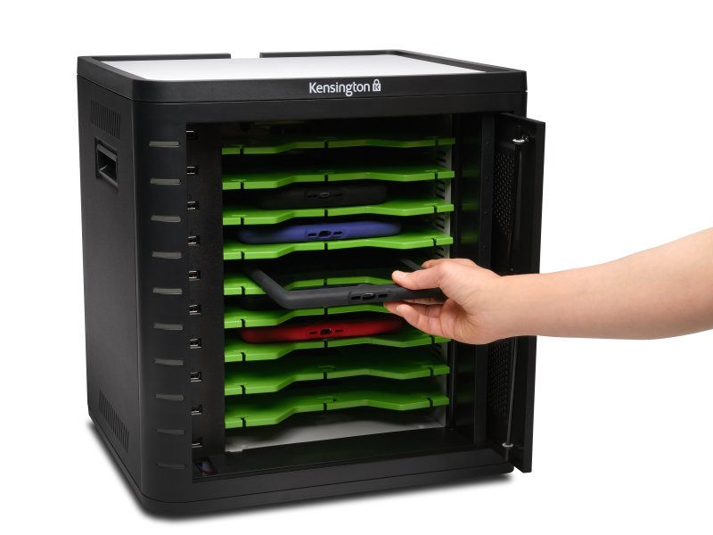 Kensington Charge & Sync Cabinet, skåp för surfplattor, laddning/synkning, låsbart, upp till 10 surfplattor