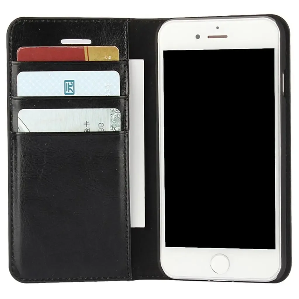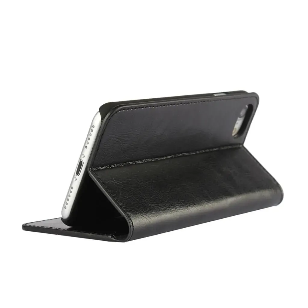 Crazy Horse iPhone SE 2020, SE 2022, 7, 8 premium plånboksfodral - Svart