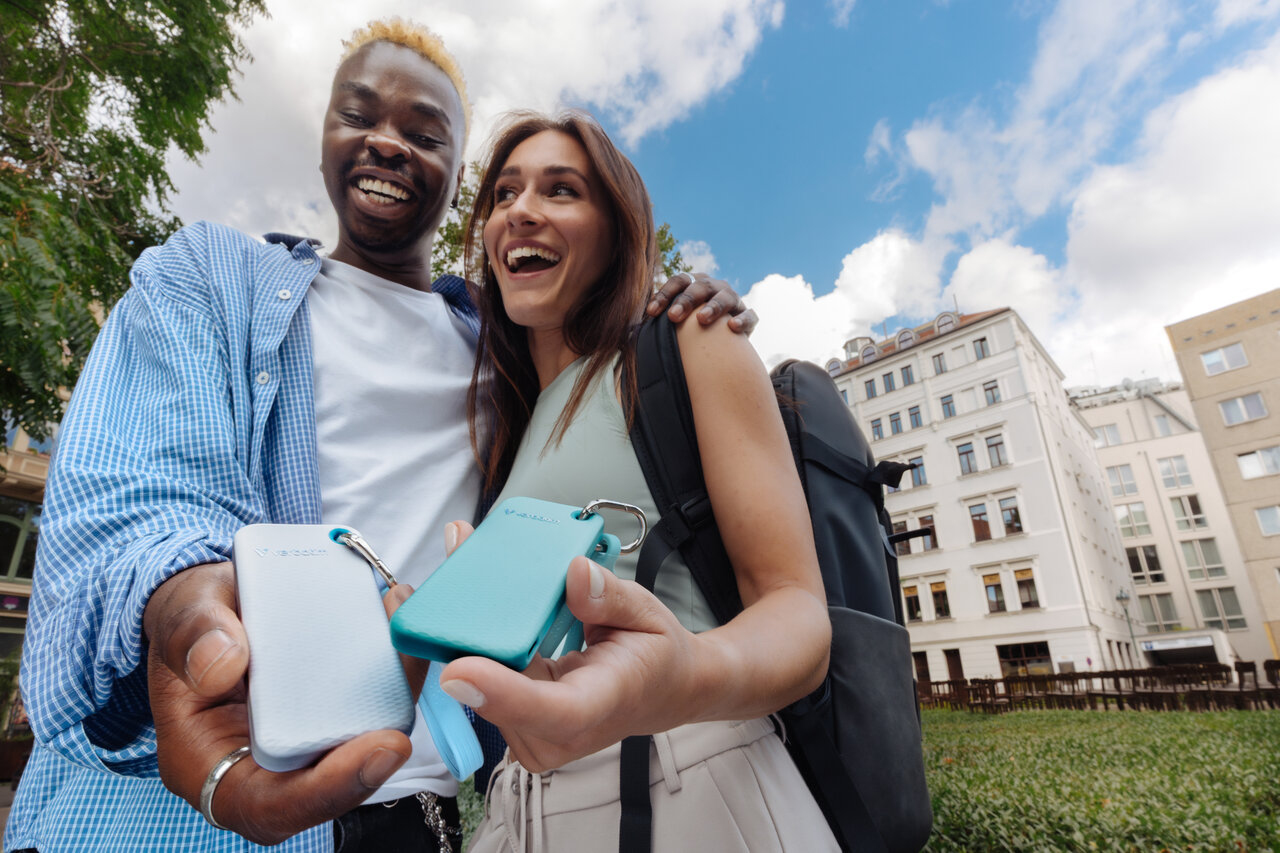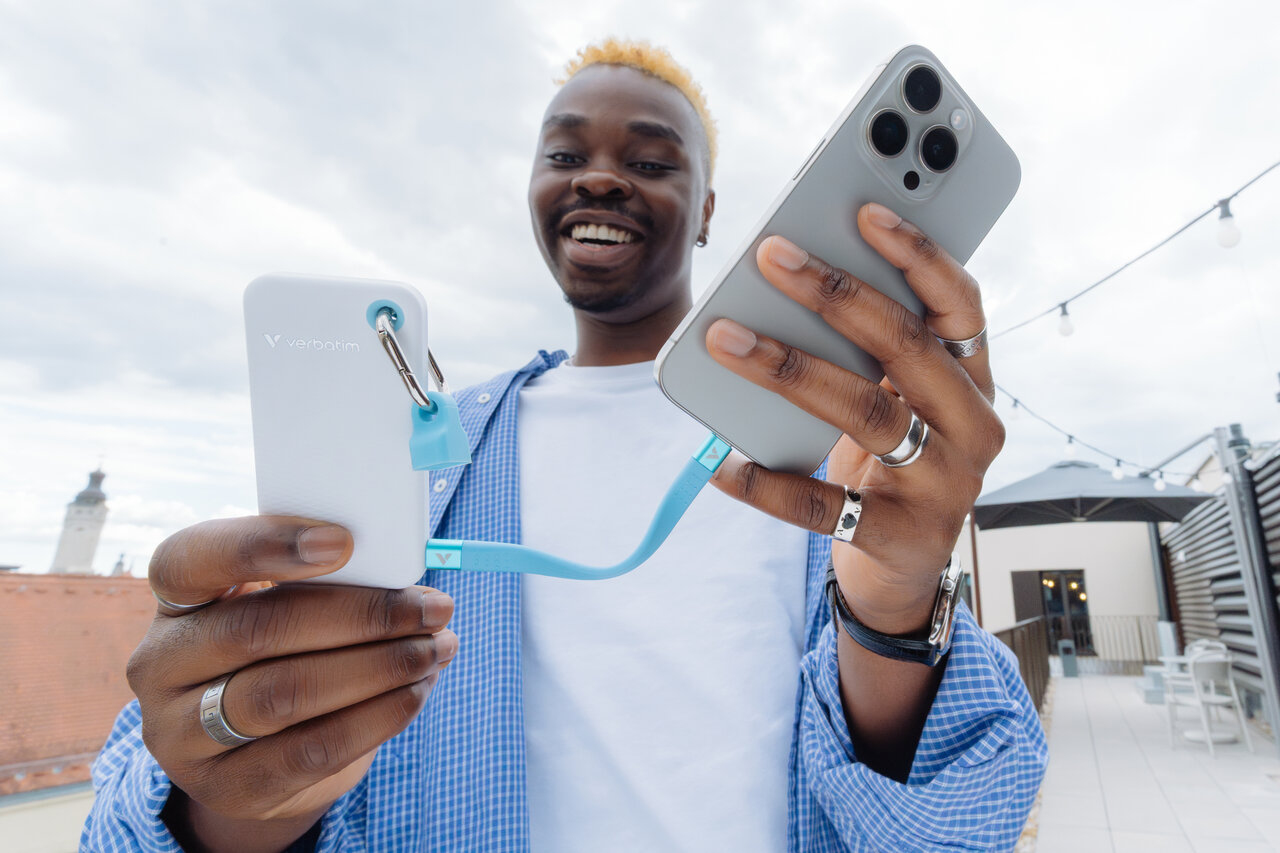 1 TB Verbatim Pocket SSD, USB 3.2 Gen2, med 2 st gummiskal - Vit/Blå