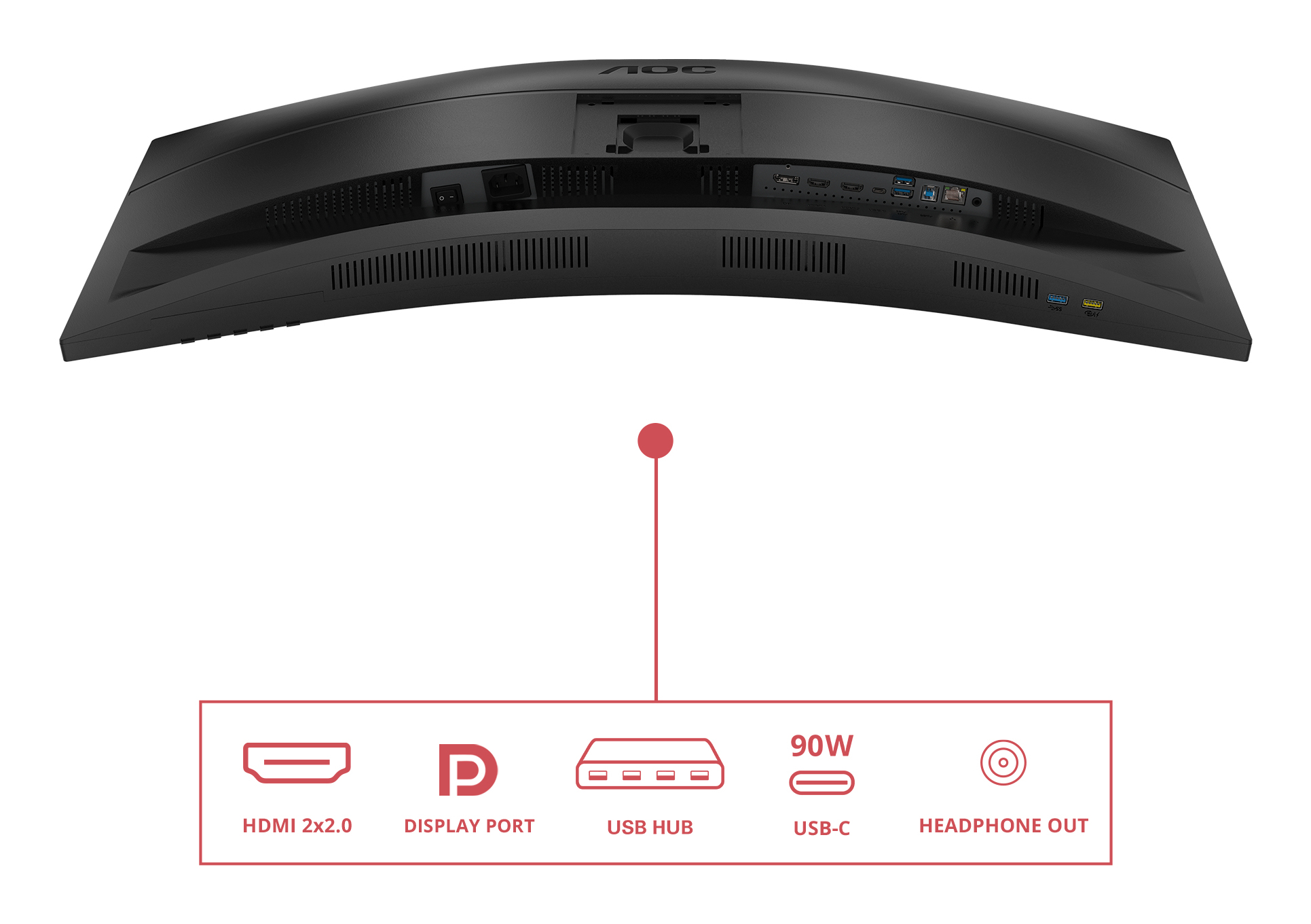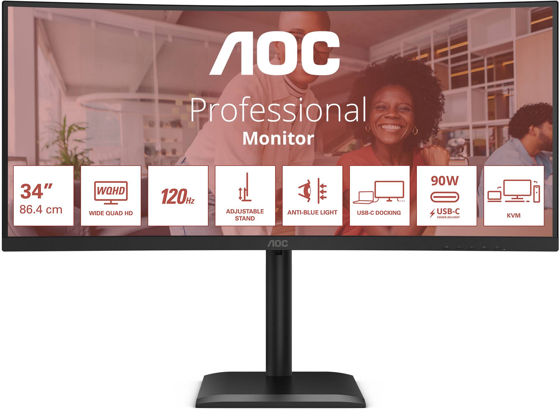 34" AOC CU34E4CV, Curved VA 3440x1440, 1 ms, 120Hz FreeSync, 1500R, höjdjusterbar, 2xHDMI/DP/USB-C 90W, högtalare, USB 3.2-hubb, 5 års garanti