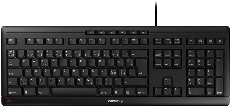Cherry Stream Corded Keyboard, USB, nordiskt - Svart