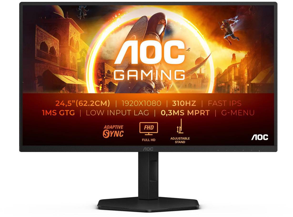 24.5" AOC Gaming 25G4SXU, Fast IPS 1920x1080, 0,3ms, 310Hz G-Sync, HDR10, höjdjusterbar, pivot, HDMI/DP, USB 3.2-hubb