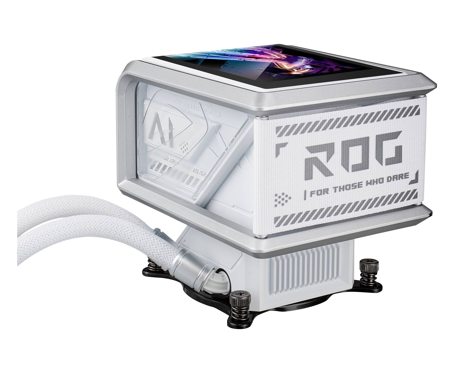 ROG Ryuo IV SLC 360 ARGB White Edition features a 6.67-inch AMOLED display, enabling intuitive control through dedicated software to smoothly display 3D videos, customized content, or hardware information. The innovative curved-screen design breaks the boundaries between the virtual and the real. The shorter 200mm tubing and a sliding LCD panel also reduce component obstruction, maximizing the visual experience. The powerful pump and ROG ARGB fans provide stable cooling performance for CPUs, including the AMD Ryzen™ 9000 series and Intel® Core™ Ultra processors.