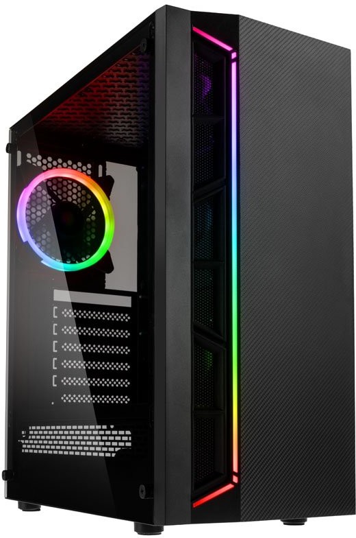 • Frontpanel med kolfiberimitation och vinklad ARGB remsa & mesh