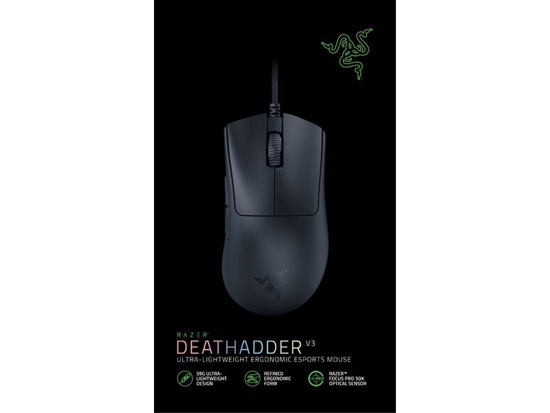 Razer DeathAdder V3, 30000 dpi - Svart