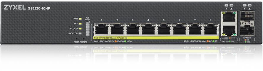 Zyxel GS2220-10HP, 8-Port Gigabit 180W PoE, 2x1GbE RJ45/SFP, Standalone/Nebula