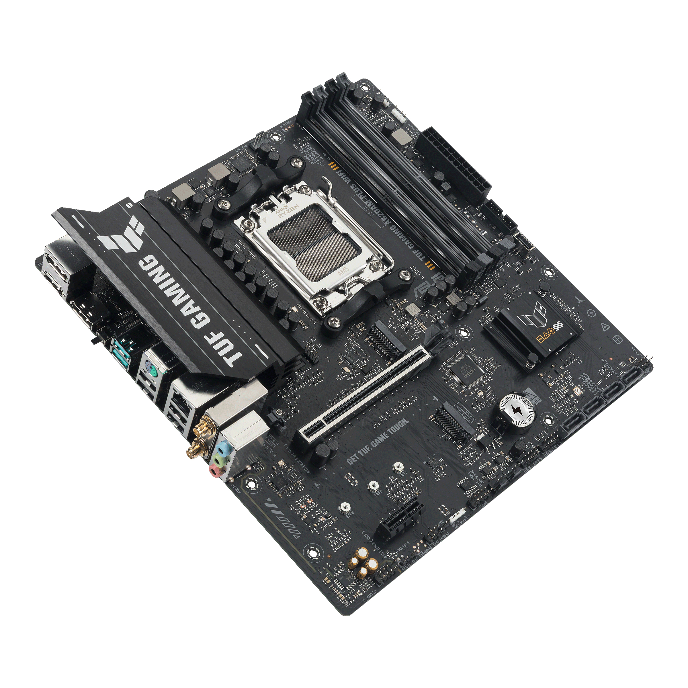 ASUS TUF GAMING A620AM-PLUS WIFI takes all the essential elements of the latest AMD Ryzen™ processors and combines them with game-ready features and proven durability. Engineered with military-grade components, an upgraded power solution and a comprehensive cooling system, this motherboard goes beyond expectations with rock-solid and stable performance for marathon gaming. TUF GAMING motherboards also undergo rigorous endurance testing to ensure that they can handle conditions where others may fail. This platform delivers the power and connectivity that advanced AI PC applications demand.