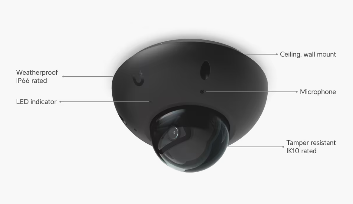 Ubiquiti Networks UniFi G6 Dome, 4K@30fps, 8MP, inomhus/utomhus, dag/natt, IR 30 meter, PoE - Svart