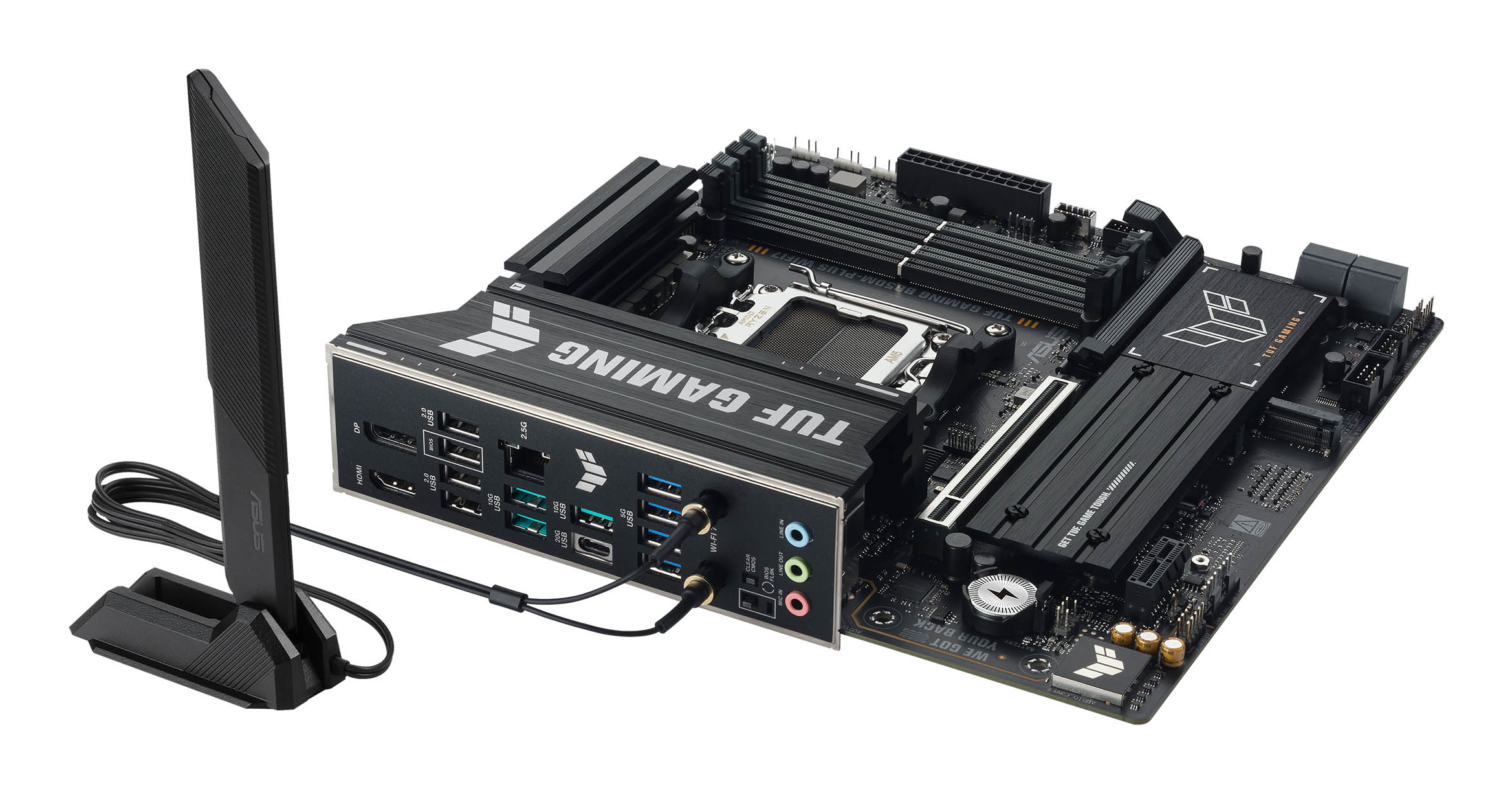 ASUS TUF GAMING B850M-PLUS WIFI7 takes all the essential elements of the latest AMD Ryzen™ processors and combines them with game-ready features and proven durability. Engineered with military-grade components, an upgraded power solution and a comprehensive cooling system, this motherboard goes beyond expectations with rock-solid and stable performance for marathon gaming. TUF GAMING motherboards also undergo rigorous endurance testing to ensure that they can handle conditions where others may fail. This platform delivers the power and connectivity that advanced AI PC applications demand.