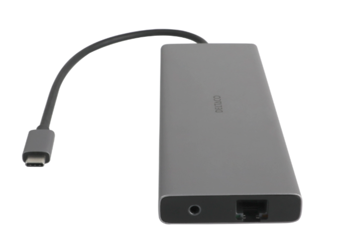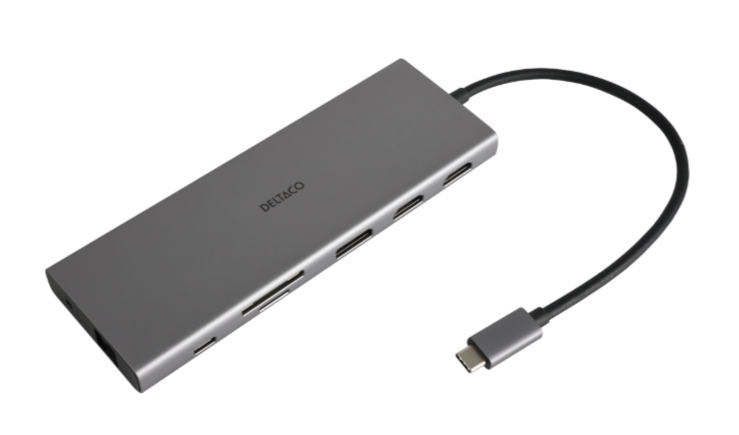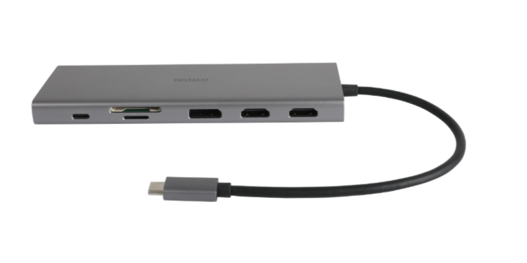 Dockningsstation Deltaco Triple, USB-C till 2xHDMI/DP/3xUSB 3.0/GigaLAN/USB-C 85W PD, kortläsare SD/MicroSD, ljud