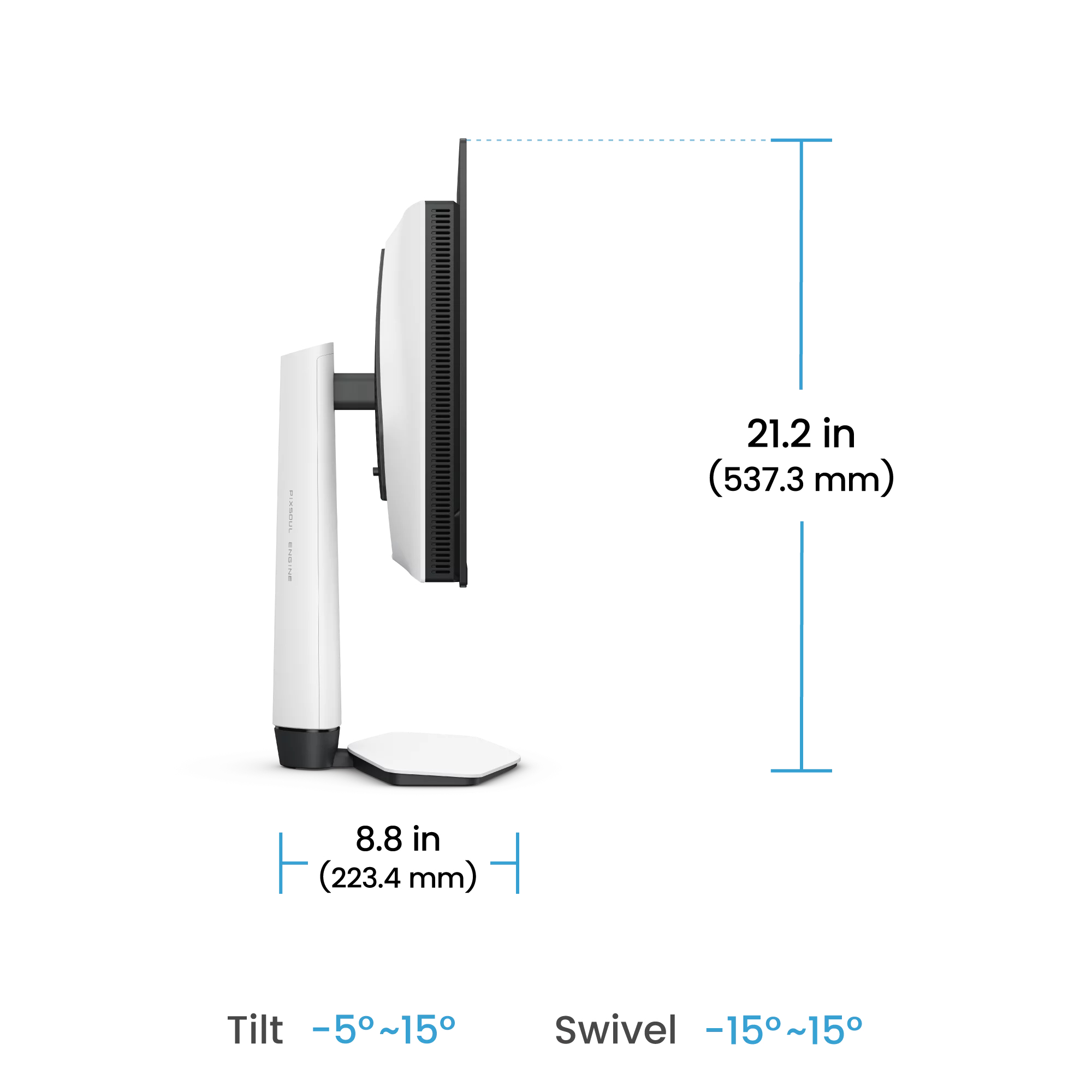 | Höjd (med stativ) | 537,3 mm |