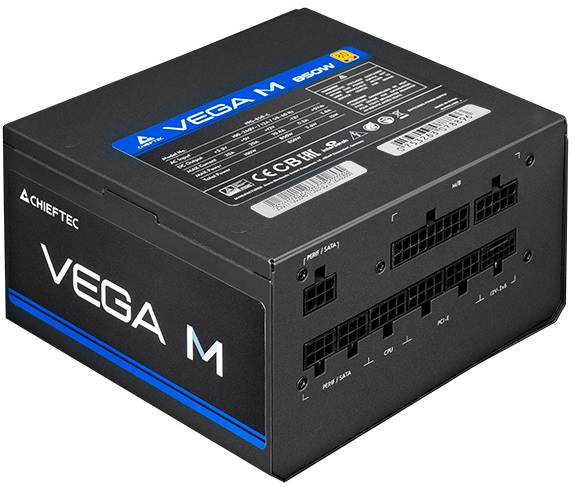 The CHIEFTEC Vega M Series power supply is built to Intel’s ATX 12V 3.1 standard and supports PCIe GEN5 with 80PLUS Gold certified efficiency. It prioritizes a competitive price-to-performance ratio up to 1000W while maintaining the trusted Chieftec quality. The Vega M Series features LLC Half-Bridge converter with DC-to-DC technology to provide enhanced power efficiency and stability.