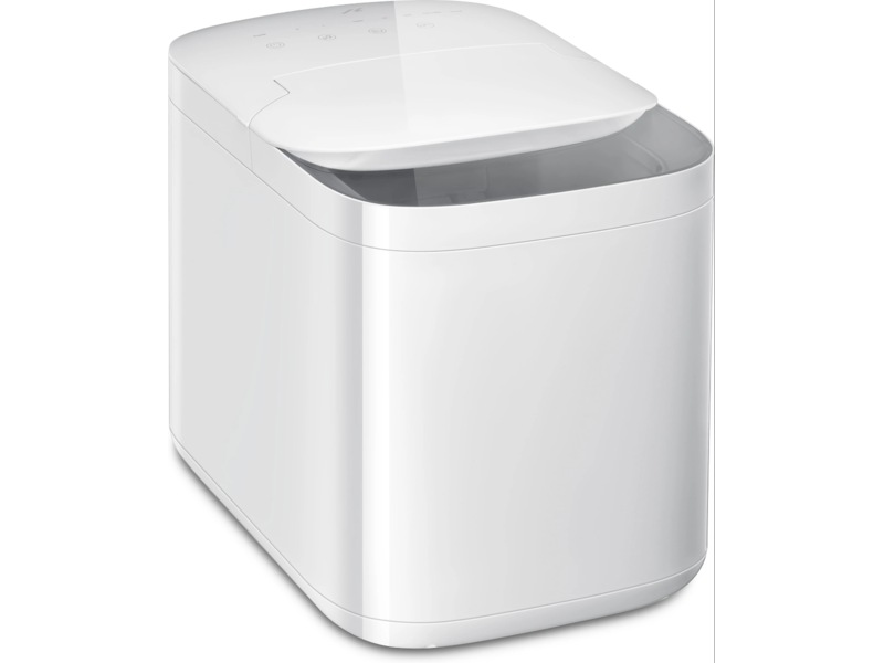Denna isbitsmaskin kan göra upp till 15 kg is per dag. Maskinen kan styras via en app, men även med pekknapparna på maskinen. Vattnet desinficeras med UV. Det finns även ett städprogram som enkelt startas via en av knapparna. Maskinen stängs av automatiskt om iskorgen är full eller när det inte finns något vatten i den. Den medföljande isskopan gör det enkelt att ta upp isbitarna och frysa in dem eller använda dem direkt.