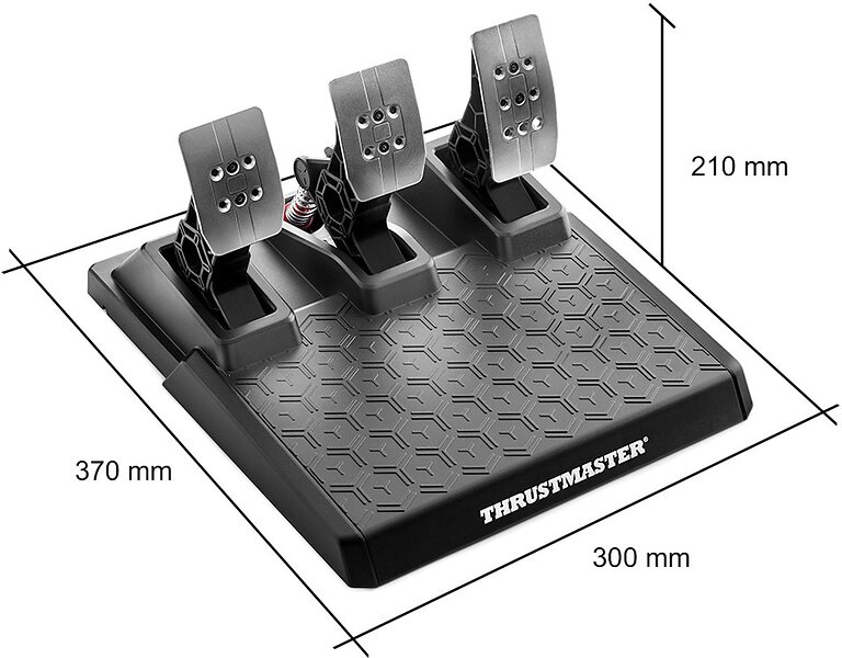 T248R incorporates the T-HD (Hybrid Drive) Force Feedback system, offering 3.1 N⋅m of torque and 48 W of constant power for realistic, dynamic driving. Its versatile, ergonomic wheel rim (11.0" / 28 cm in diameter) features 25 action buttons, including 2 dual-activation encoders, and a sporty new design with perforated leather and imitation carbon finishes. Its next-gen interface, with a color LCD screen (more than 20 different displays) and 4 LEDs, lets you adjust the racing wheel's settings on the fly, and display telemetry information in real time. The T-MP paddle shifters with Mag-Shift sensors ensure instant gear shifting. The T3PM pedal set, featuring Hall Effect (H.E.A.R.T.) sensors, offers optimal precision and 4 pressure modes for the brake pedal.
