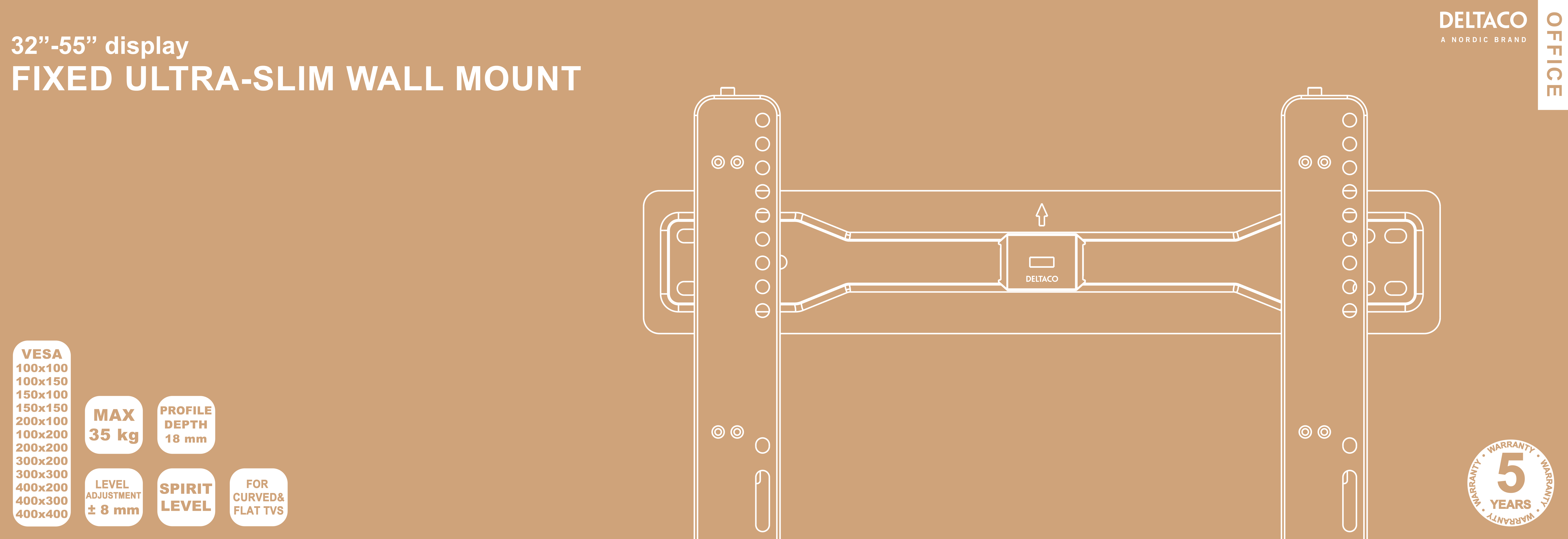 Väggfäste Deltaco ARM-0150 Office, fixed ultra-slim wall, 32-55", 35kg, VESA 100x100-400x400mm